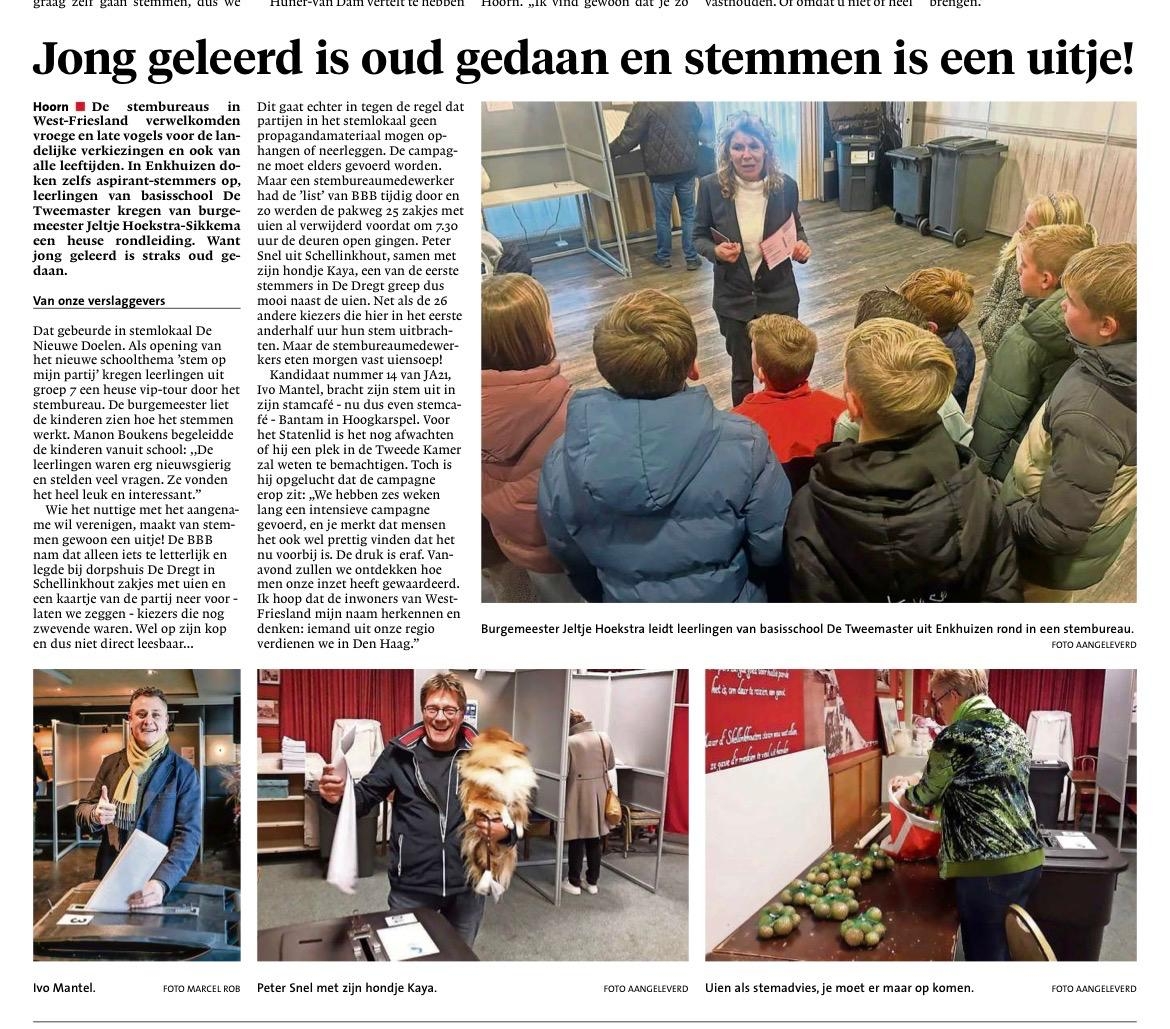 Op 29 oktober 2025 werd groep 7 uitgenodigd door de burgemeester om op het stembureau in de Nieuwe Doelen te komen kijken. Dit was een goede aftrap voor het thema in de klas: "Stem op mijn partij".